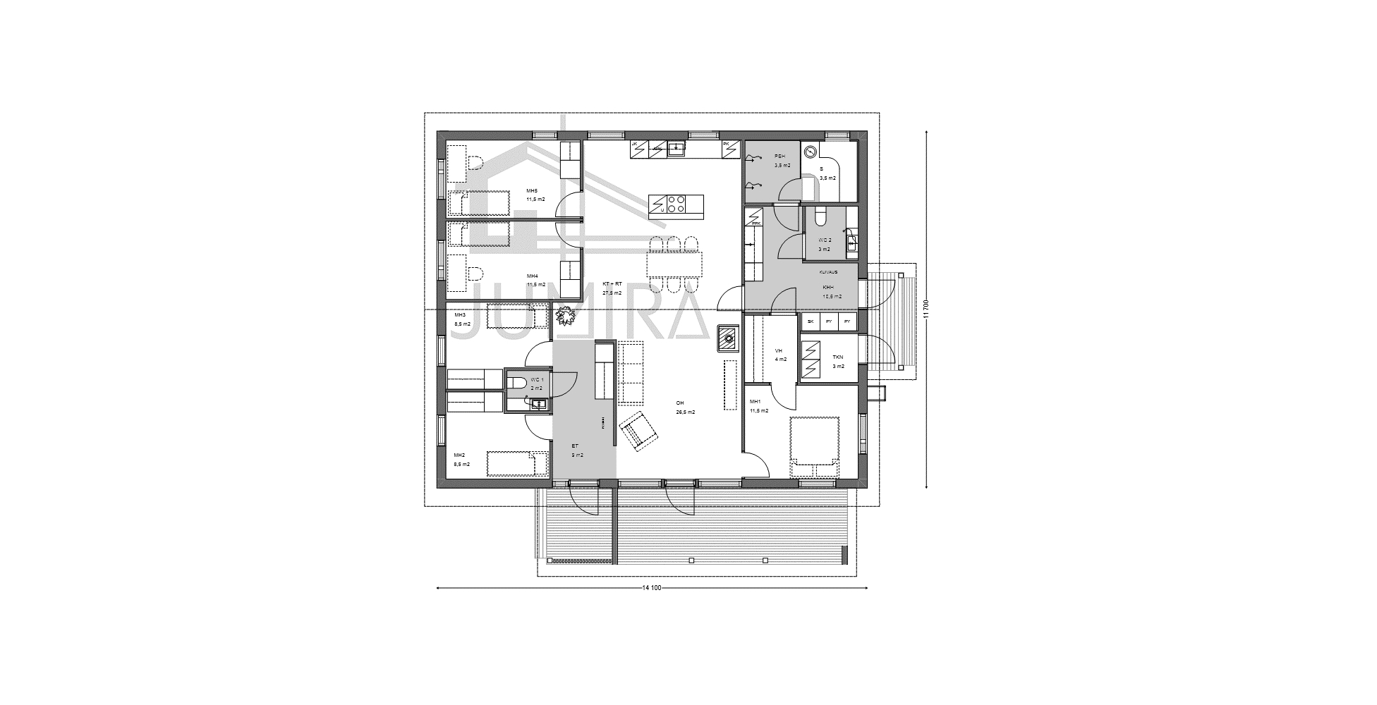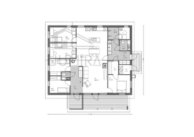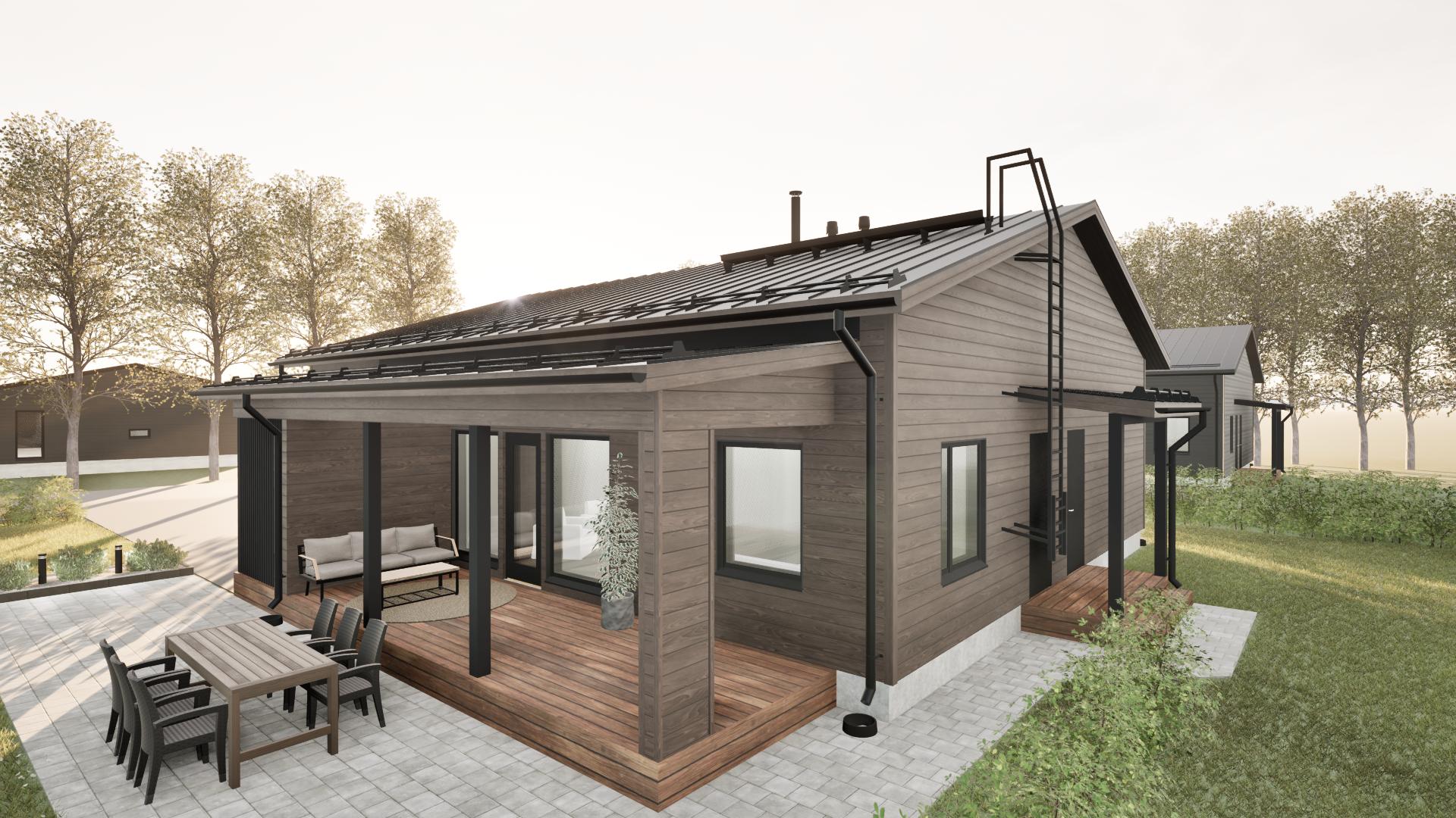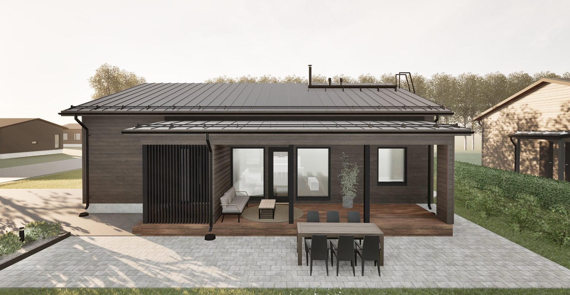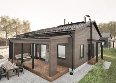 Tämän asunnon parhaisiin puoliin kuuluvat reilut oleskelu- ja ruokailutilat. Olohuone on helposti kalustettavissa ja tulisijan sijoitus tarjoaa puitteet tunnelmalliseen oleskeluun. Ikkunoiden sijoituksen ansiosta tilaan tulvii luonnonvaloa molemmin puolin rakennusta. Suojaisaa sisääntuloa ja etuterassia voidaan kauniisti korostaa maalivalinnoilla.