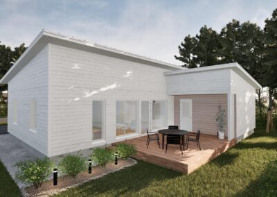 Läpitalon näkymiä tarjoava muotokieleltään kaunis koti