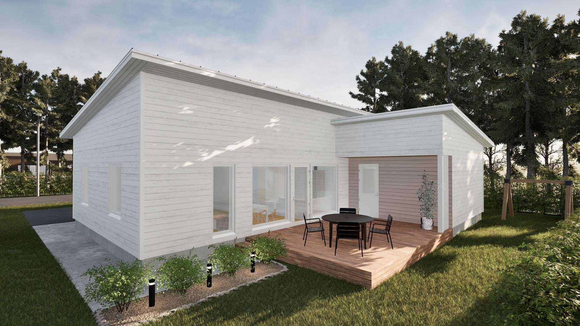 Tilava, runsaalla kaappitilalla varustettu keittiö mahdollistaa inspiroivan työskentelytilan ruoanlaiton ystävälle. Keittiöön ja ruokailutilaan tulvii luonnonvaloa molemmin puolin taloa, jonka lisäksi tulisija luo lämpöä ja tunnelmaa oleskeluun.