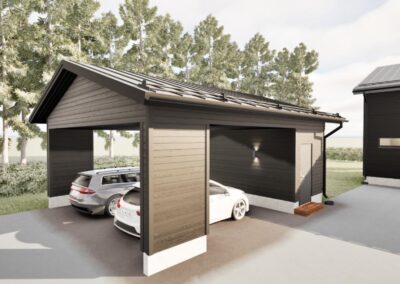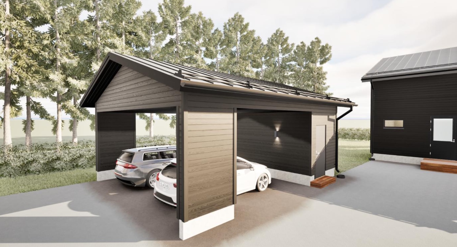 Tämä autokatos kahdella autopaikalla ja varastolla on hyvä lisä talopakettiisi. Yksinkertaisen katoksen yhteensovittaminen asuinrakennukseen onnistuu vaivattomasti julkisivuvärivalinnoilla. Autokatoksen voi ostaa myös erillisenä kokonaisuutena.